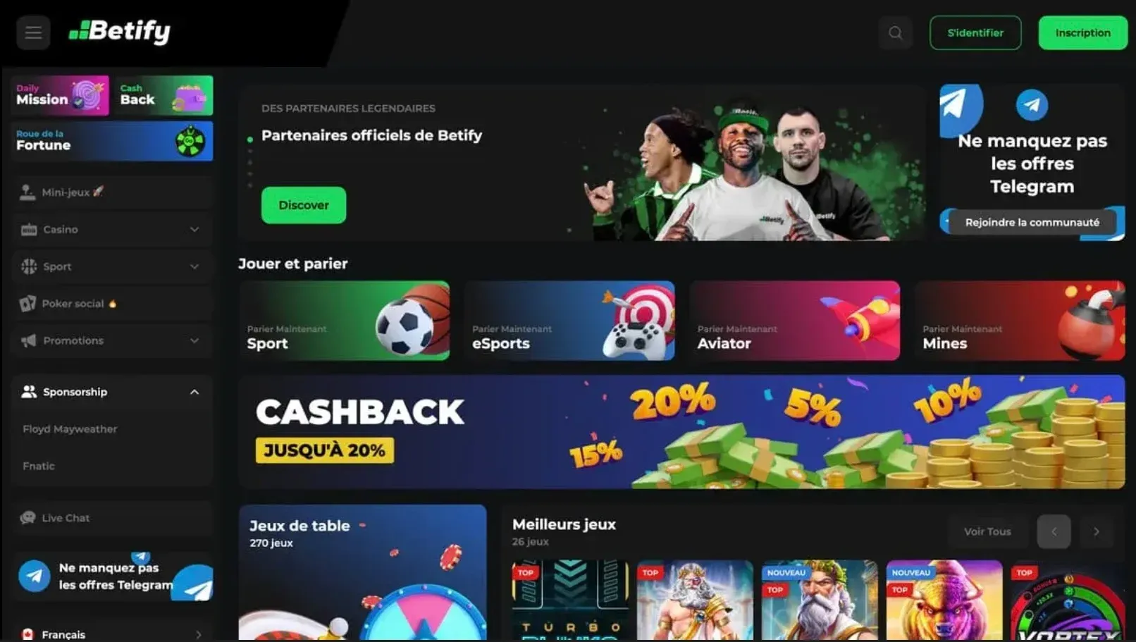Lancé en 2023, Betify s'est rapidement imposé comme un acteur incontournable. Se positionnant comme une plateforme hybride entre paris sportifs, e-sport et casino en ligne, il vise une clientèle jeune et dynamique, particulièrement à l'aise avec les nouvelles technologies et les cryptomonnaies. Sa popularité repose sur une interface moderne, une offre de jeux pléthorique et sa promesse de transactions quasi-instantanées.