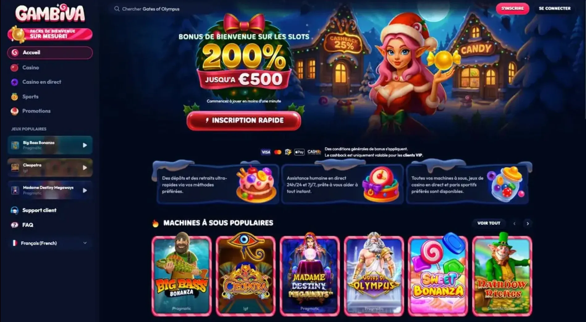 Gambiva, lancé en 2023, se positionne comme un casino moderne et convivial. Il cible les joueurs à la recherche d'une expérience simple et efficace, avec un large choix de jeux et des promotions régulières. Sa popularité grandit grâce à son interface épurée et ses paiements rapides.