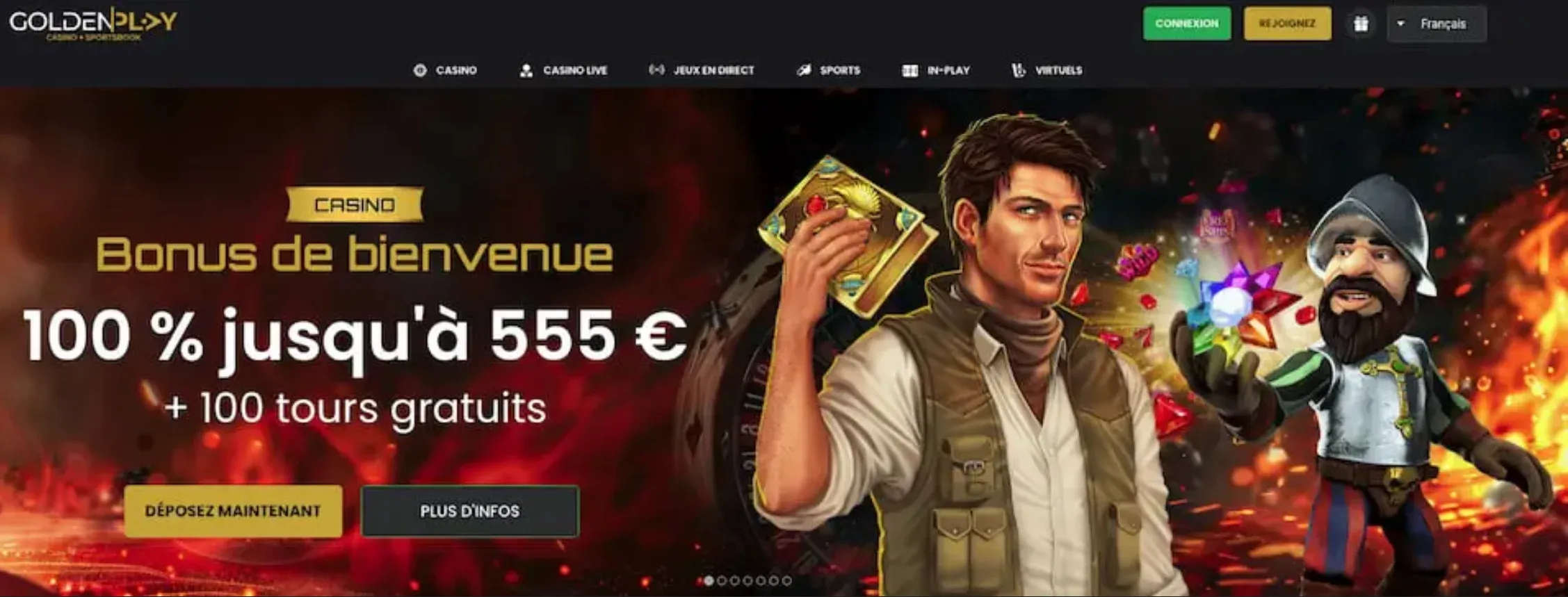 Golden Play (2023) cherche à offrir une expérience de jeu premium. Avec une sélection de plus de 8000 jeux et un design élégant, il vise les joueurs qui apprécient une touche de luxe et un service soigné. Son programme de fidélité est particulièrement attractif.