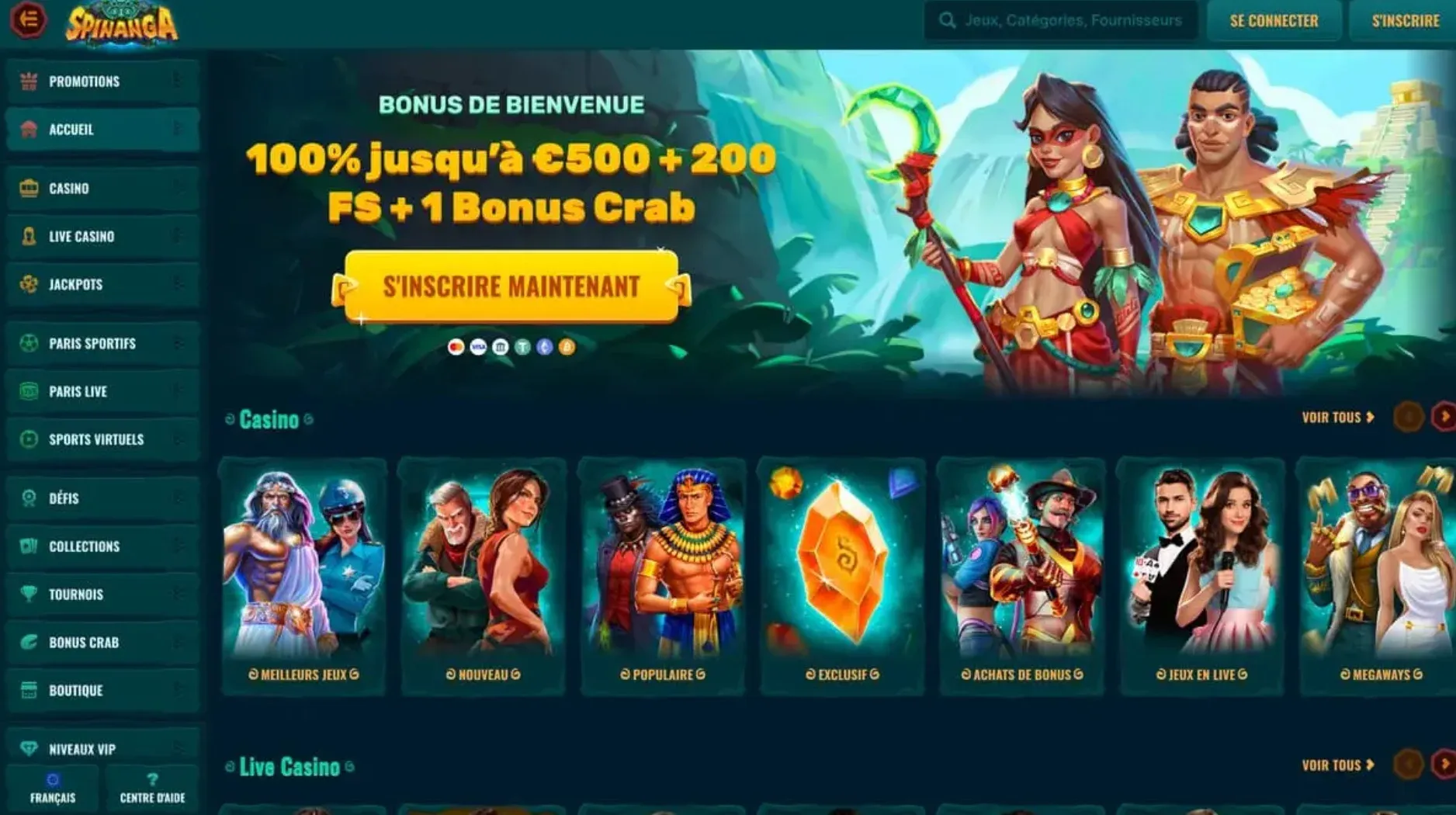 Spinanga (2024) est un casino en ligne qui met l'accent sur les tournois de machines à sous et l'interaction communautaire. Il s'adresse aux joueurs compétitifs qui aiment se mesurer aux autres. Son bonus de bienvenue est l'un des plus élevés du marché.